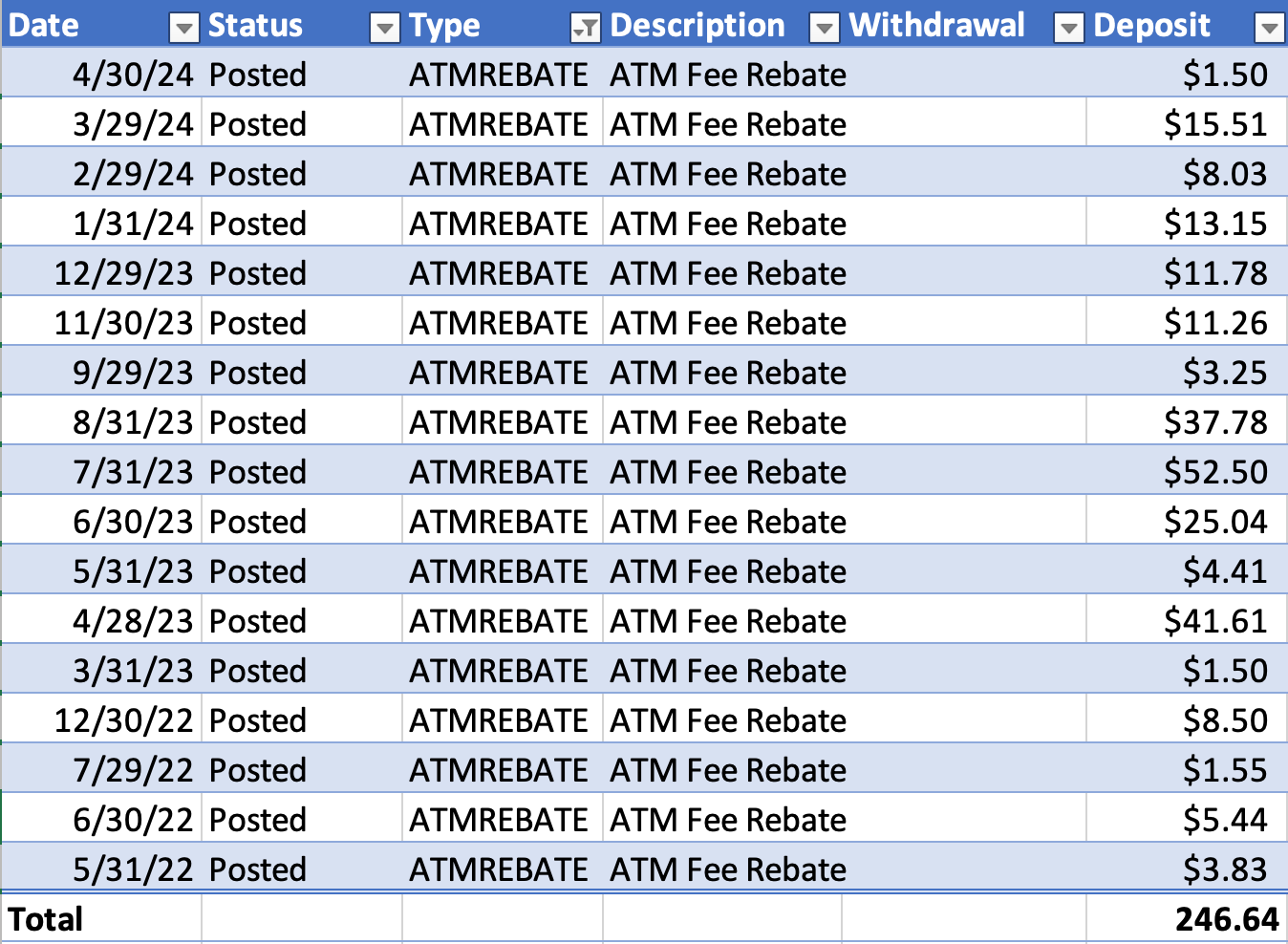 I just did the math and apparently I've gotten back over $250 in ATM fees in just the last 2 years!
